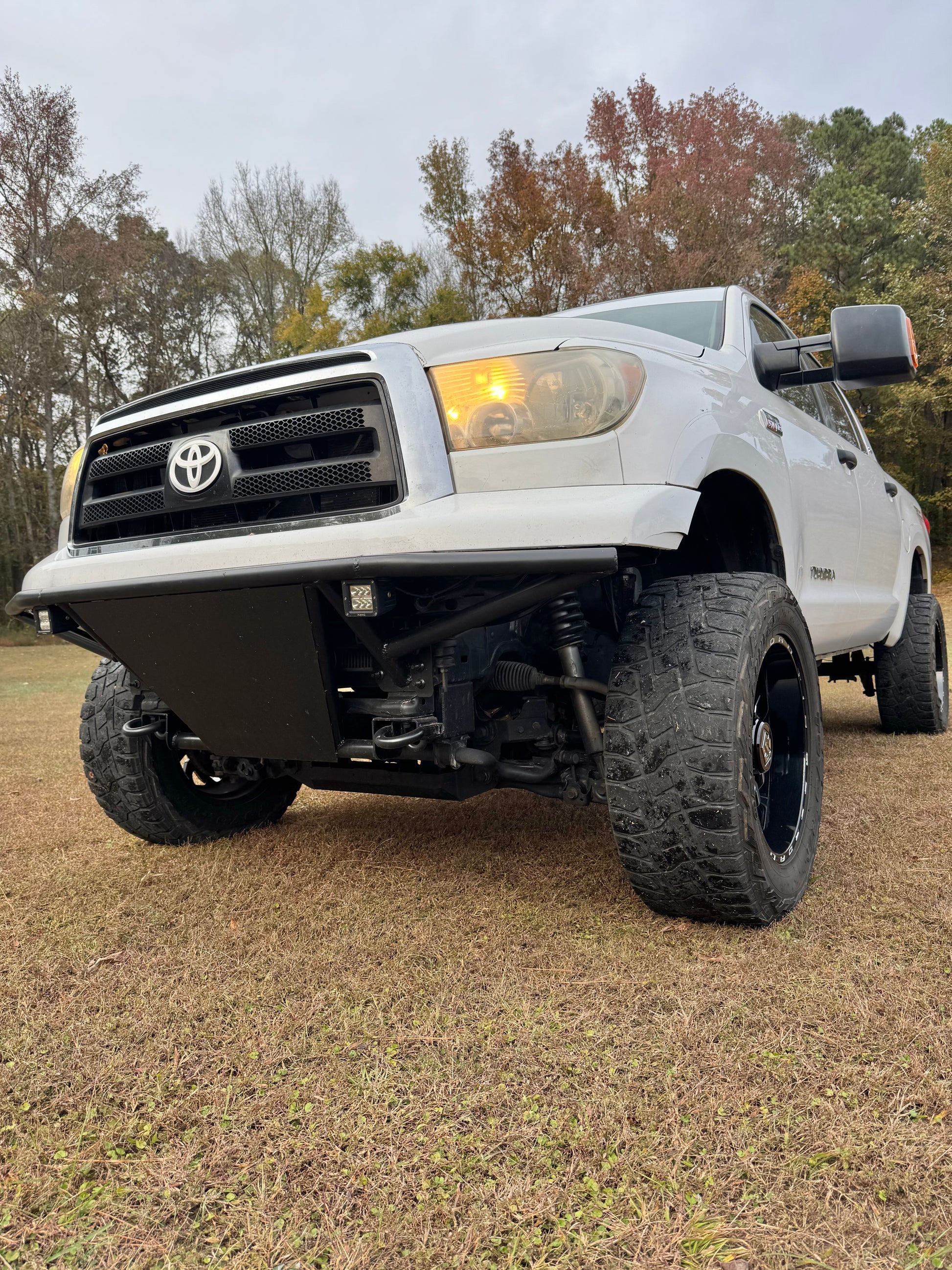 F3Fab tubular steel prerunner bumper for the 2nd gen Tundra (07-13) same bumper design as our competitors and same design looks but at a significant price cut. We can do this as all bumpers ship RAW and we use a steel plate on the front rather than aluminum as the base model. Also available with an aluminum skid plate!